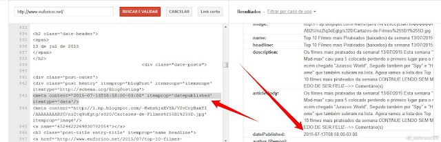 Como corrigir o erro datePublished: no blogger Dados estruturados
